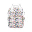 Vintage Cameras White design multi function backpack with white handles. Waterproof nylon polyester. Size is: 10.83"(L) x 6.69"(W) x 15"(H) x 3.1"(Hand Drop). Large capacity. One main compartment and some seperate pockets inside. Front compartment includes 3 seperate insulated pockets to hold drinks or snacks. Adjustable shoulder straps for comfort and durability. Zipper closure. Easy care clean by hand. Perfect for photographers to carry equipment on day trips or weekends away. $10 shipping worldwide.