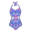 Blue Pink Aqua hand drawn digital art design womens halter neck sexy one piece swimsuit. Spandex blend material. Machine wash or hand wash in water temperature below 45ºC, do not bleach, do not iron. Comfortable fabric with pads to shape your breasts. Design has a feature that draws your eye in at the waist. Free worldwide shipping.