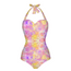 Pretty Pastels design womens halter neck sexy one piece swimsuit. Spandex blend material. Machine wash or hand wash in water temperature below 45ºC, do not bleach, do not iron. Comfortable fabric with pads to shape your breasts. Look for the matching accessories. Check the size chart to ensure it will fit. Free worldwide shipping.