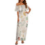 Boho Beige design women's off shoulder ruffle top dress.  Material is a Spandex blend for a comfortable and soft fit. Suitable for lots of occasions. Maxi style. Check the size chart to ensure it will fit. Could be easily shortened to suit your height. Easy care hand or machine washable.  Free worldwide shipping.
