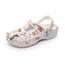 Cats and Dogs on a white background design. Look for the black background design too. There are two different ways to wear these with the back strap behind your heel or in front to slip on easily. Constructed with lightweight and soft but durable rubber EVA material. Anti slip, hard wearing and quick drying. Perfect for camping and outdoor use such as gardening or at the beach. Personally worn and tested. They look much more vibrant in real life. So comfy and really light shoes to wear with light ribbing inside for a foot massage. Video is Leafy Dreams design. $20 shipping worldwide due to the bulky nature of these items. Australian sizes are the same as American sizes.