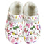 Orchids Graphic design women's rubber clogs with white fleece interior. There are two different ways to wear these with the back strap behind your heel or in front to slip on easily. Constructed with lightweight and soft but durable rubber EVA material. Anti slip, hard wearing and quick drying. They look much more vibrant in real life. So comfy and really light shoes to wear. $20 shipping worldwide due to the bulky nature of these items. Australian sizes are the same as American sizes. You may want to buy a size up due to the interior fur.