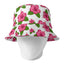 Graphic Pink Hibiscus on a white background bucket hat.  Double side printed so you can turn up one side and still show the pink Hibiscus pattern.High-quality printing in 100% Microfiber diagonal cloth. Easy wearing and easy care. Look for the matching accessories in the same design.  $5 shipping worldwide.