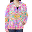 Colourful Whispers hand drawn digital art hoodie that is made from a thick Spandex blend. Each panel is cut and sewn together to ensure a flawless graphic. Design pulls the eye in at the waist. Heavy duty metal zip, cool pouch pockets. Features drawstring hood, long sleeves, elastic sleeve cuff and waistband. Personally worn and tested. Lovely jackets. $10 shipping worldwide due to the bulky nature of this item.