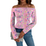Wildflowers Painted Pink Off Shoulder Slim Fit Long Sleeve Top up to 5 XL