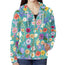 Teal Colourful Floral hoodie that is made from a thick Spandex blend. Not sweatshirt material. Each panel is cut and sewn together to ensure a flawless graphic. Heavy duty metal zip, cool pouch pockets. Features drawstring hood, long sleeves, elastic sleeve cuffs and waistband. Cord is removeable. Look for the matching accessories. Personally worn and tested. Check the size chart to ensure it will fit. $10 shipping worldwide due to the bulky nature of this item.