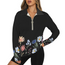 Wildflowers Painted Black L Zip Neck Long Sleeve Top up to 5 XL