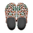 Black base rubber clogs in a Camo Leopard hand drawn digital art design. Great in water as they float really well.  Can be worn with or without socks.  Strap can be over the heel at the back or pushed forward at the top out of the way.  Soft, lightweight and very comfy.  Durable EVA rubber.  American sizes are the same as Australian sizes.  Check the size chart to ensure they fit well.  $20 shipping worldwide due to the bulky nature of these items.