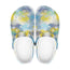 Dabbled hand drawn digital art design. Mens or unisex. Great in water as they float really well.  Can be worn with or without socks.  Strap can be over the heel at the back or pushed forward at the top out of the way.  Soft, lightweight and very comfy.  Durable white EVA rubber.  American sizes are the same as Australian sizes.  Check the size chart to ensure they fit well.  $20 shipping worldwide due to the bulky nature of these items.