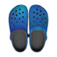 Black base rubber clogs in a blue ocean inspired hand drawn digital art design. Mens or unisex. Great in water as they float really well.  Can be worn with or without socks.  Strap can be over the heel at the back or pushed forward at the top out of the way.  Soft, lightweight and very comfy.  Durable EVA rubber.  American sizes are the same as Australian sizes.  Check the size chart to ensure they fit well.  $20 shipping worldwide due to the bulky nature of these items.