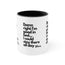 "Damn right I'm good in bed... I could stay there all day".  Add some color to your routine with this two-tone, funny coffee mug. This 11oz mug features a C-handle that is comfortable to use, as well as an accented interior to add more contrast and character.  Choose from black, navy, blue, red and pink. Lead and BPA-free.  Great gift idea.