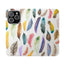 Colourful Feathers Wallet Style Phone Case Vegan Leather