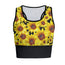 Sunflowers New Black design women's sports bra top with a thick elastic bottom for comfort.  Can be worn under clothes for support or as a stand alone activewear piece for walking, yoga etc. Comes with breast pads that are easily removable. Simple to care for and easy wearing with big sizes available. Fabric is Microfiber and Spandex. Fabric weight: 230g/m². Care Instructions: machine wash cold with similar colors, do not bleach, tumble dry low, do not iron, do not dry clean. Personally worn and tested.  Look for the matching accessories.  2 XL is Australian women's size 16.  $5 shipping worldwide.