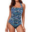 Black and Blue Stained Glass design women's bathing suit. Spandex blend. Adjustable neck tie closure. Ruched front with removable padding in the breast area. Design suits all figures. Sizing up to 5 XL. Check the size chart to ensure it will fit. Free Worldwide Shipping.