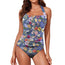 Blue Colourful Floral women's bathing suit. Spandex blend. Adjustable neck tie closure. Ruched front with removable padding in the breast area. Design suits all figures. Sizing up to 5 XL. Check the size chart to ensure it will fit. Free Worldwide Shipping.