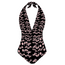 Japanese Pink Flowers Dark art design halter neck bathing suit for women. Material is Spandex blend. Has soft breast pads and an adjustable neck tie. Check the size chart below. Machine wash or hand wash in water temperature below 45ºC, do not bleach, do not iron. Free worldwide shipping.