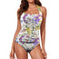 Large White Floral design women's bathing suit. Spandex blend. Adjustable neck tie closure. Ruched front with removable padding in the breast area. Design suits all figures. Sizing up to 5 XL. Check the size chart to ensure it will fit. Free Worldwide Shipping.