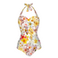Multi Frangipani White womens halter neck sexy one piece swimsuit. Spandex blend material. Machine wash or hand wash in water temperature below 45ºC, do not bleach, do not iron. Comfortable fabric with pads to shape your breasts. Check the size chart to ensure a good fit. Free worldwide shipping.