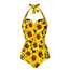 New Sunflowers Black design womens halter neck sexy one piece swimsuit. Spandex blend material. Machine wash or hand wash in water temperature below 45ºC, do not bleach, do not iron. Comfortable fabric with pads to shape your breasts. Check the size chart to ensure a good fit. Free worldwide shipping.