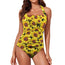 New Sunflowers Black women's bathing suit. Spandex blend. Adjustable neck tie closure. Ruched front with removable padding in the breast area. Design suits all figures. Sizing up to 5 XL. Check the size chart to ensure it will fit. Free Worldwide Shipping.