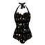Wildflowers Black design womens halter neck sexy one piece swimsuit. Spandex blend material. Machine wash or hand wash in water temperature below 45ºC, do not bleach, do not iron. Comfortable fabric with pads to shape your breasts. Free worldwide shipping.