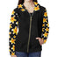 Yellow Frangipani flower design on the sleeves and hood. Black body. Hoodie that is made from a thick Spandex blend. Each panel is cut and sewn together to ensure a flawless graphic. Heavy duty metal zip, cool pouch pockets. Features drawstring hood, long sleeves, elastic sleeve cuff and waistband which are great for ladies who don't like sleeves falling down. Personally worn and tested. Good to order a size up as you always wear layers under a hoodie. $10 shipping worldwide due to the bulky nature of this item.