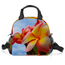 Frangipani Sky design Insulated with aluminium foil Lunch Bag 25.5 cms by 16.5 cms by 22.5 cms. (10" x 6.5" by 8.9") that is reusable, practical and stylish rather than using plastic bags for your lunch items. Detachable shoulder strap is 38 cms (15.4 inches). Double sided printed. With net sides for small items. Easy to grip and carry around with the two sets of handles - top handles and a shoulder strap. Great for work lunches, picnics, day trips or travel. Hand wash only with a damp cloth. Shipping $5 worldwide.