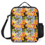 Fresh Frangipanis Lunch Bag 7.8" x 3.1" x 9.8" with side water bottle pocket. [Material]: 600D Polyester. [Size]: Length 20cm x Width 8cm x Height 25cm (7.8" x 3.1" x 9.8"). Strap length adjustable from 63.5cm (25") to 120cm (47.2"). One side printing. Back side is plain black. Black straps. Zipper closure with side bottle pocket. Waterproof and easy to clean. Small size and better suited to children's food rather than adults. Shipping $5 worldwide.