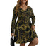 Classic V neck dress with long sleeves in Golden Frangipani Black design. These dresses start at large and go up to 5 XL. Lots of room to move. The design makes the most of your bust area while covering your mid section with loose fabric. Microfiber fabric (170 g/m) is comfortable and soft. Can be worn with a jacket. FREE WORLDWIDE SHIPPING. Check the size chart below.