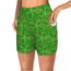 Golden Frangipani Green digital art design Yoga short pants that are 80% Microfiber + 20% Spandex for stretch and comfort while exercising or walking. With pockets on each side for your phone and keys. Non see through fabric, quick drying, breathable, moisture wicking, 4 way stretch premium fabric. High waist with tummy control. Easy care and easy washing. Check the size chart to ensure they will fit. FREE WORLDWIDE SHIPPING.