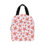 Graphic Pink Frangipanis on a white background design insulated zippered lunch bag with handles. Light weight and durable. Water resistant and can be wiped clean with a cloth. For your lunch or anything else you need to carry out with you. $10 shipping worldwide.