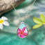 Pink Frangipani design pendant necklace for Frangipani or Plumeria lovers. This beautiful piece features a vibrant elipse-shaped pendant, perfect for showcasing your unique style. The glossy finish enhances the rich colors of the design, making it a standout accessory for any occasion or gift. Perfect for those who appreciate vibrant, personalized jewelry, this piece is sure to become a cherished favorite. Secure lobster clasp closure. Durable zinc alloy construction for lasting wear. Ships from the USA. FREE WORLDWIDE SHIPPING.