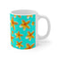 Yellow Frangipanis on an aqua background design mug for the Frangipani or Plumeria lovers. Classic style mug in white ceramic with 11 oz capacity, rounded corners and a C style handle. Dishwasher and Microwave Safe. Look for the matching take anywhere reuseable cup and the metal tumblers in the same design.