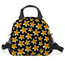 Yellow Frangipanis on a black Insulated with aluminium foil Lunch Bag 25.5 cms by 16.5 cms by 22.5 cms. (10" x 6.5" by 8.9") that is reusable, practical and stylish rather than using plastic bags for your lunch items. Detachable shoulder strap is 38 cms (15.4 inches). Double sided printed. With net sides for small items. Easy to grip and carry around with the two sets of handles - top handles and a shoulder strap. Great for work lunches, picnics, day trips or travel. Hand wash only with a damp cloth. Shipping $5 worldwide.