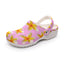 Classic rubber clogs for Frangipani lovers. Yellow on a pink background. There are two different ways to wear these with the back strap behind your heel or in front to slip on easily. Constructed with lightweight and soft but durable rubber EVA material. Anti slip, hard wearing and quick drying. Perfect for camping and outdoor use such as gardening or at the beach. Personally worn and tested. They look much more vibrant in real life. So comfy and really light shoes to wear with light ribbing inside for a foot massage. See video how they actually float, making them idea for waterside activities such as boating and fishing. (Video is Leafy Dreams design) $20 shipping worldwide due to the bulky nature of these items. Australian sizes are the same as American sizes.