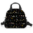 Wildflowers Black digital art design Insulated with aluminium foil Lunch Bag 25.5 cms by 16.5 cms by 22.5 cms. (10" x 6.5" by 8.9") that is reusable, practical and stylish rather than using plastic bags for your lunch items. Detachable shoulder strap is 38 cms (15.4 inches). Double sided printed. With net sides for small items. Easy to grip and carry around with the two sets of handles - top handles and a shoulder strap. Great for work lunches, picnics, day trips or travel. Hand wash only with a damp cloth. Shipping $5 worldwide.