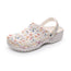 Wildflowers Painted White design. There are two different ways to wear these with the back strap behind your heel or in front to slip on easily. Constructed with lightweight and soft but durable rubber EVA material. Anti slip, hard wearing and quick drying. Perfect for camping and outdoor use such as gardening or at the beach. Personally worn and tested. They look much more vibrant in real life. So comfy and really light shoes to wear with light ribbing inside for a foot massage. $20 shipping worldwide due to the bulky nature of these items. Australian sizes are the same as American sizes.