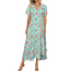 Aqua Floral long dress that is made from a 95% Chiffon + 5% Spandex which is light and breezy fabric. High waist, cute sleeves and asymetrical ruffle trim at the bottom. Wrap belt at the waist and a high split on one side. Easy hand or machine washable. Check the size chart to ensure it will fit. Suitable for taller ladies. Short versions available too. FREE WORLDWIDE SHIPPING.