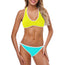These great halter neck bikinis with white adjustable ties can be bought as a single set or buy two and mix and match for different looks. Great idea for vacations. Spandex blend. Wide straps and white side ties for optimal comfort and adjustable fit. Padded cups. Check the size chart carefully. Will not fade in water. Purple and Orange styles also available. Free worldwide shipping.
