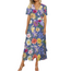Blue Colourful floral long dress that is made from 95% Chiffon and 5% spandex that is light and breezy fabric. high waist, cute sleeves and an asymetrical ruffle trim at the bottom. Wrap belt at the waist and a high split on one side. Easy hand or machine washable. Check the size chart to ensure it will fit. FREE WORLDWIDE SHIPPING.