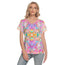 Colourful Whispers hand drawn digital art design Women's V Neck Top. All over print with short sleeves. Regular fit. Personally worn and tested. Thin Microfiber and Spandex material which is perfect for hot days. Easy tear off label. Fabric weight:120g/m². Check size chart below. Lots of sizes. FREE WORLDWIDE SHIPPING.
