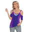 Dark Blue leopard hand drawn digital art design top for women with criss cross straps.  Fabric is 95% single-knit cotton and 5% spandex. Regular fit.  Cold shoulder, short sleeve, thin shoulder straps, cross straps on chest. Fabric weight: 180g/m².  FREE SHIPPING WORLDWIDE.