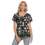 Graphic Lillies Black V Neck Top with 4 XL (FWS)