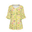 Graphic Lillies Yellow floral top with v neck and bell shaped longer sleeves to cover your upper arms. Lots of sizes up to 3 XL. Regular fit. Fabric: Jersey and Spandex blend. Fabric weight is 180g/m². Perfect for shopping, brunch, holidays and casual wear. FREE WORLDWIDE SHIPPING. Check the size chart to make sure it will fit.