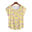 Japanese Pink Flowers Yellow top. Look for the blue version too. Classic round neck women's top with a curved hem and short sleeves. Cool and comfortable. Fabric is Jersey and Spandex. Fabric weight is 180g/m². Easy care machine wash. Personally worn and tested. Great tops to wear. Check the size chart. Sizes up to 5 XL. Australian women's 16 is a nice baggy fitting XL. FREE WORLDWIDE SHIPPING.