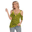 Lemon Leopard design all over print top for women with criss cross straps. Look for the Hot Pink Leopard version too. Fabric is 95% single-knit cotton and 5% spandex. Regular fit. Cold shoulder style, short sleeve, thin shoulder straps, cross straps on chest. Unique and different. Fabric weight: 180g/m². FREE SHIPPING WORLDWIDE.