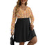 lassic V neck dress with long sleeves.  Leopard Fire design which is hand drawn digital art on the top to add a pop of colour while the bottom is black.  Adds colour without being overpowering.  These dresses start at large and go up to 5 XL. Lots of room to move. The design makes the most of your bust area while covering your mid section with loose fabric. Fabric (170 g/m) is comfortable and soft.  Microfiber. Can be worn with a jacket. Check the size chart below. FREE WORLDWIDE SHIPPING.