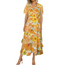 Orange & Yellow Floral White long dress that is made from 95% Chiffon + 5% Spandex light and breezy fabric. High waist, cute sleeves and asymetrical ruffle trim at the bottom. Wrap belt at the waist and a high split on one side. Look for the black version too. Easy hand or machine washable. Check the size chart to ensure it will fit.  Suitable for taller ladies. FREE WORLDWIDE SHIPPING.
