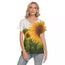 Bright and cheery Sunflowers design. All over print. Deep V Neck, short sleeves.  Thin Microfiber and Spandex material which is perfect for hot days.  Regular fit.  Fabric weight:120g/m². Check size chart below. FREE WORLDWIDE SHIPPING.