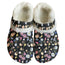 Wildflowers Painted Black women's rubber clogs with white or black fleece interior. There are two different ways to wear these with the back strap behind your heel or in front to slip on easily. Constructed with lightweight and soft but durable rubber EVA material. Anti slip, hard wearing and quick drying. Personally worn and tested. They look much more vibrant in real life. So comfy and really light shoes to wear.  $20 shipping worldwide due to the bulky nature of these items. Australian sizes are the same as American sizes. You may want to buy a size up due to the interior fur.